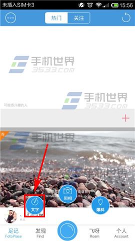 1)打开足记,进入到主页后,点击下方的【蓝色按钮】,小编点击【文字】给大家示范下。(如下图)