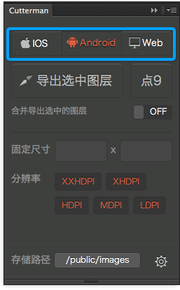 Cutterman提供了面向三种平台的切图特性