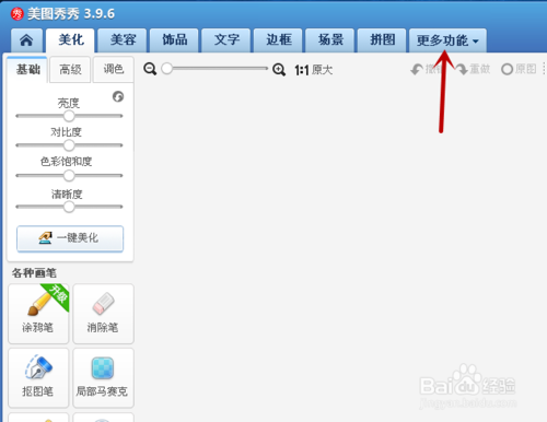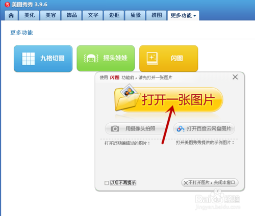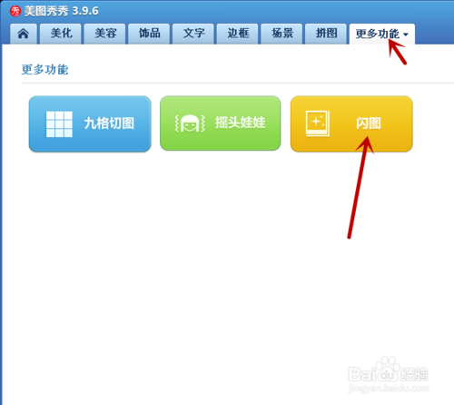 3、点击上面的更多功能,接着点击闪图。