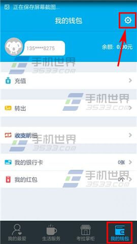 1)打开拉卡拉,在【我的钱包】栏点击右上角的【齿轮标志】,选择【账户安全】;(如下图)