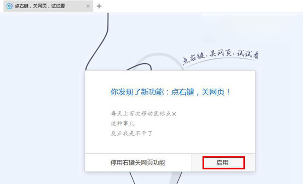 在浏览器的右上角找到“设置”图标,点击一下“启用一点浏览器右键快速关闭网页”即可停用该功能。