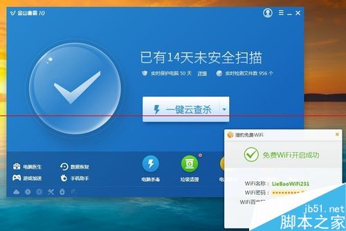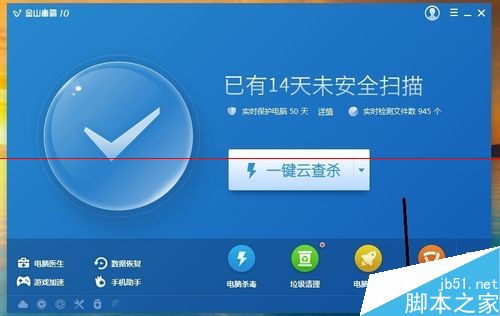 1、首先我们需要找到金山毒霸的图标,鼠标左键双击,进入功能界面。