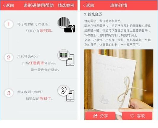 用「礼物说」扫描任意商品条形码,录一段声音存进去,朋友收到礼物后,扫码就能听到你的语音祝福啦。