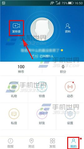 1)打开醒醒,在【我的】栏点击头像旁边的【发铃声】;(如下图)