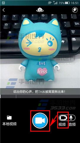 2)在右下角先选中【视频】,然后可以点击左下角选择【本地视频】,或者点击下方正中的【录像标志】进行录制,录制完成时点击下方的【丨丨】;(如下图)