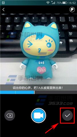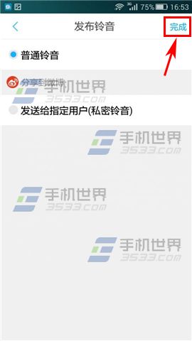 4)输入想说的话并选择视频封面,然后点击【下一步】,选择是【普通铃声】还是【发送给指定用户】,然后点击【完成】就可以了。(如下图)