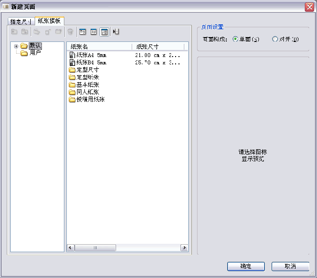 小贴士: 作品建成后,可以自由删除或增加页面,也就是说,页数可以自己再修改,也可以设置某2个页面变成跨页; 而单页作品,则不可以添增新页面,也没有办法变成跨页。 “建立页面”有一个“纸张模板”(见图)