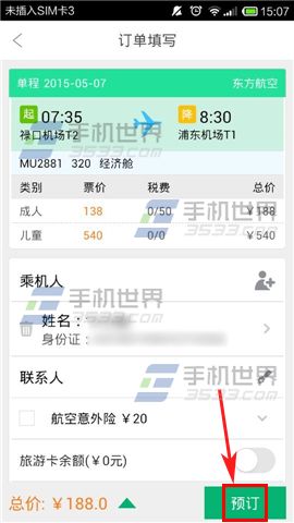 3)填写乘机人以及联系人后再次点击【预订】,确认订单无误后点击【支付】按钮,输入支付密码后即可。(如下图)