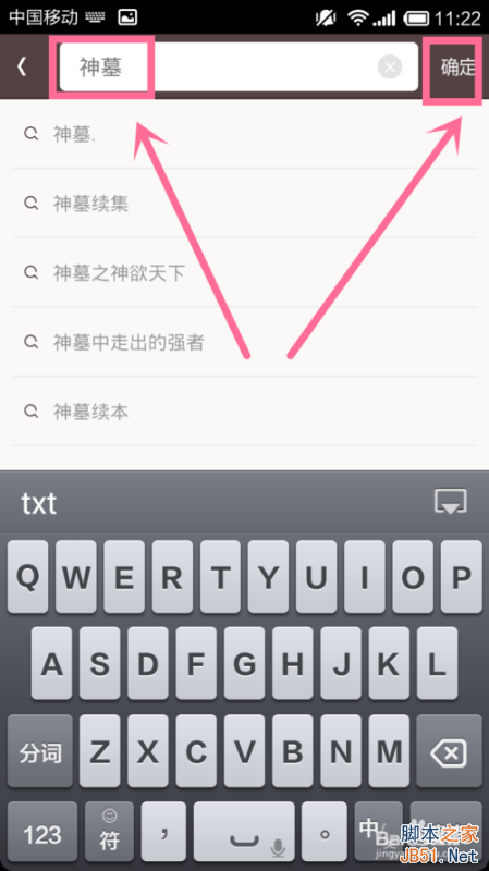 显示出来的界面是你的个人书架-点击上方的搜索-输入你想要小说的名字(我以神墓为例)-点击搜索。