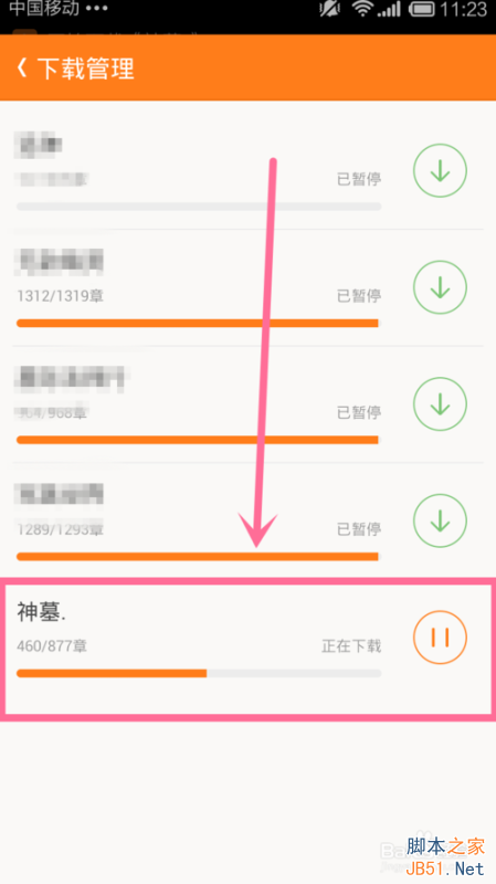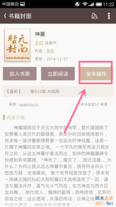 出现一堆什么小说,找最完整的那个(一般是前几个),进入小说界面,点击缓存就行(你可以在上方点击书架去看看下载进度)