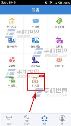 1)打开【51信用卡管家】,进入首页后点击【服务】按钮。(如下图)