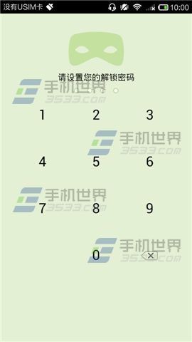1)打开【伪锁】,首先先设上解锁密码,设置好后点击【面具】的图标。(如下图)