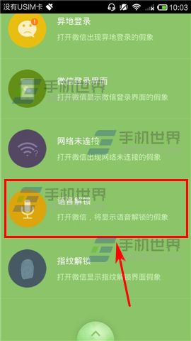 2)跳转到设置微信伪装假象列表,用手指往上拉升看看自己喜欢哪种个性上锁假象,点击其中一种假象,小编就以【语音解锁】为例。(如下图)