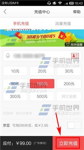 2)输入手机号码,选择要充值的面额,还可以用京豆抵现金哦,接着点击【立即充值】按钮,选择一种支付方式,输入支付密码即可。(如下图)