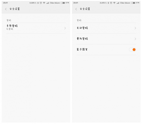 5,关于钱方面的APP,当然还是得增加一个“安全设置”,目前仅仅支持手势密码,设置后每次进入小米金融APP都需要输入密码才能进入,如果忘记了手势密码,还可以使用小米账号密码进行登录。希望以后能加入每个人小米账号对应的安全控件,这样别人就算知道你的信息,也不能在他的手机上使用啦。如下图所示: