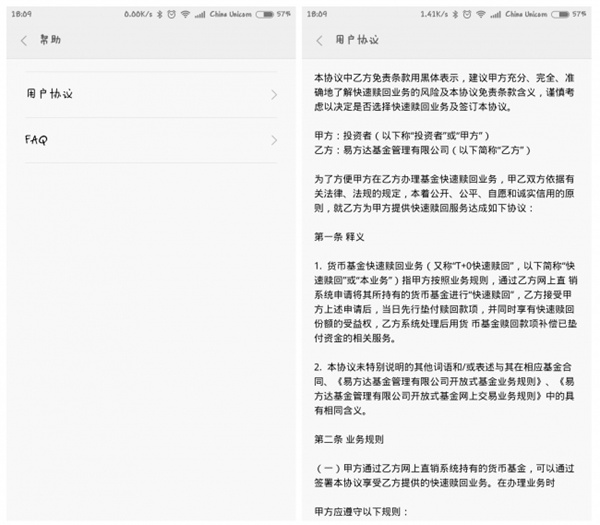 6,在帮助界面,有用户协议以及FAQ。大家炒股记得去看看“用户协议”来保证自己利益。如下图所示: