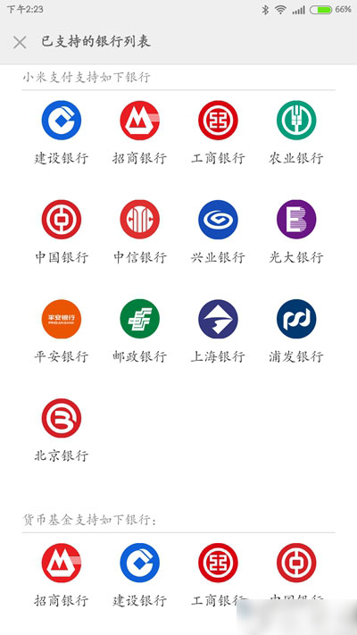 我们看到小米钱包支持国内主流银行,例如建设因哈根呢、工商银行、中国银行等