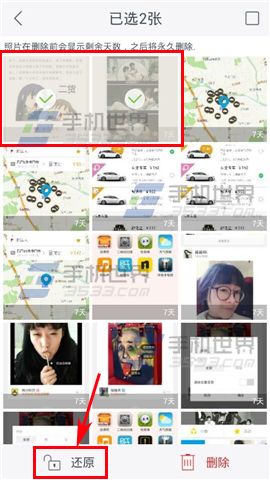 2)选择【最近删除】一项,勾选上需要还原的照片(删除的照片最多保存七天,七天后永久删除),然后点击【还原】即可。(如下图)