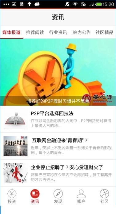 3、进入发现页面,即可观看产品介绍、安心保障、活动专题、新人帮助等信息,同时还可以扫一扫和进行投资理财的计算哦。