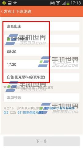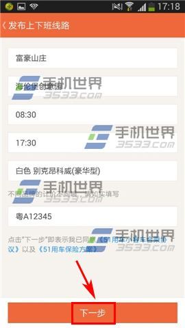 3)输入车牌号后在点击【下一步】即可发布成功。(如下图)