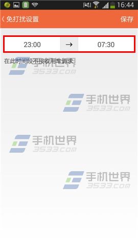 3)再点击【免打扰模式】,设置【时间段】不接收用车请求在点击保存。(如下图)