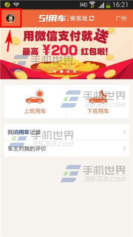 1)首先打开【51用车】软件点击进入,在点击左上角【头像】。(如下图)