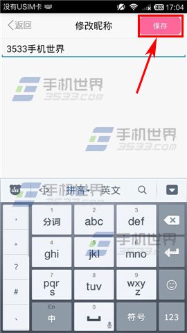 2)进入到个人信息页面点击【昵称】一项,输入新昵称点击【保存】即可。(如下图)