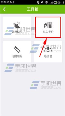 1)打开悠悠驾车,进入首页后点击【工具箱】,接着点击【购车报价】。(如下图)