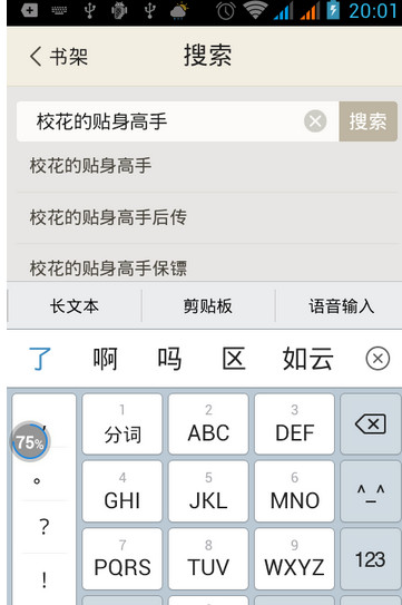 6、点击搜索入口,到界面后搜索想要的书籍和小说