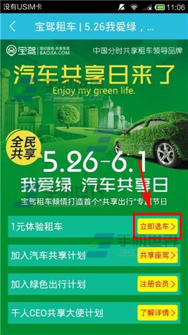 汽车共享日来了,5.26至6.1日每天好车租不停,只需一元哦~快来体验一元租车吧,如果你不知道怎么进行租车,且看这篇宝驾租车一元租车方法,希望对大家有帮助。