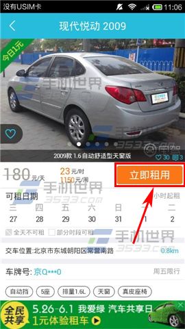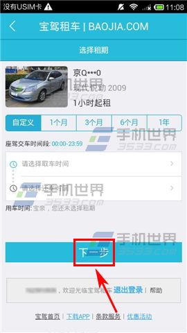 4)接着点击【立即租用】,选择取车时间和还车时间点击【下一步】,接下来按照系统提示进行操作即可。(如下图)