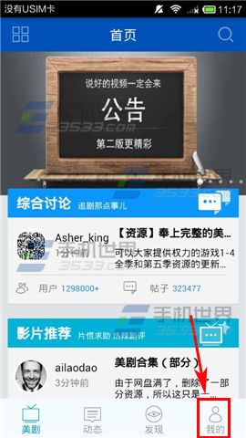 1)打开【人人美剧】,进入首页点击右下角的【我的】按钮。(如下图)