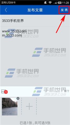 3)在该专区详情页面后点击右上角的【一支笔】按钮进入到发布文章页面,编辑好标题内容以及添加照片后点击【发布】即可。(如下图)