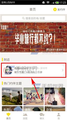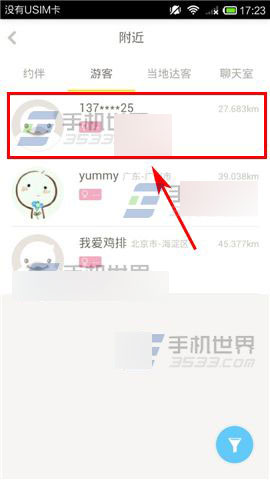 1)打开达客旅行,小编先从【附近】栏中选择一位【用户】给大家示范下。(如下图)