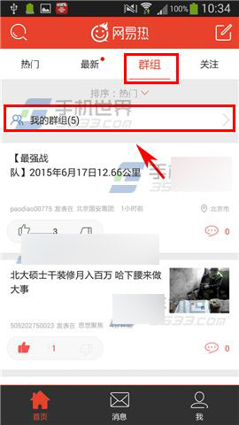1)安装并打开【网易热】,在【首页】的【群组】栏里,点击【我的群组】。(如下图)
