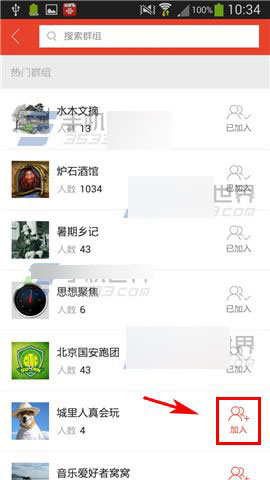 2)点击右上角的【添加】,找到感兴趣的群组点击【加入】即可。(如下图)