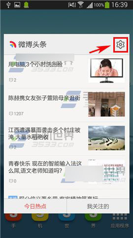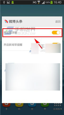 1)在待机界面中点击【微博头条悬浮窗】,点击【设置】。(如下图)