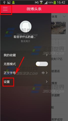 3)除上述方法外,我们可以点击微博头条主界面中的【三横】找到【开启悬浮窗】将它关闭即可。(如下图)