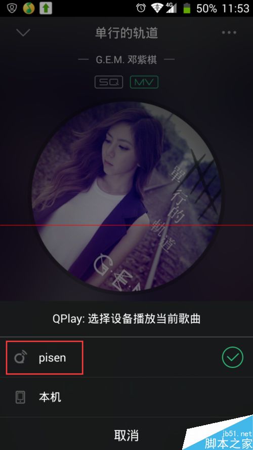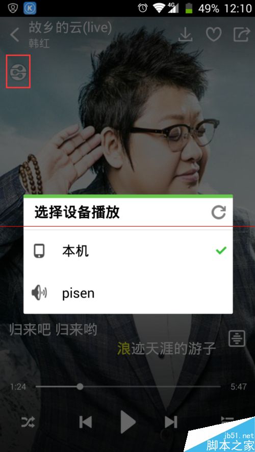 8、点击左上角图标,选择设备播放中点击“pisen”即可
