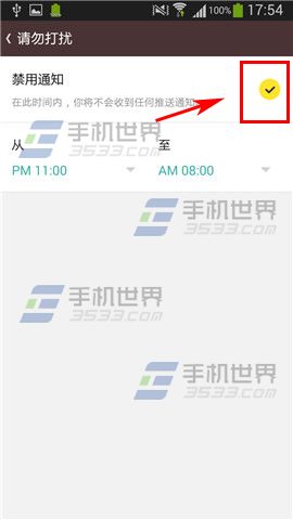 2)点击【请勿打扰】,将该模式开启后,可自行设置勿扰时间。(如下图)