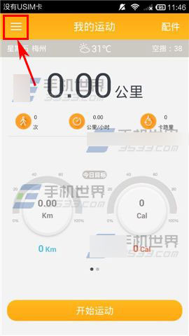 1)打开点点运动,进入首页点击左上角的【三】按钮,弹出菜单栏,点击【发现】一项。(如下图)