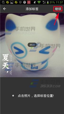 3)点击图片添加好标签接着点击左上角【继续】,编辑好要发布的内容,最后点击【发布】即可。(如下图)