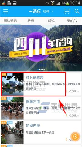 1)进入【一路乐导游】应用,找到你想要查看的旅游景点,点击该【景点】进入详情页。(如下图)