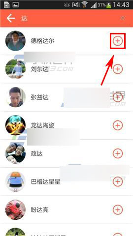 2)接着可以点击右上角【搜索】,输入对方手机号码或者昵称搜索后点击你要添加的好友右边【+】即可。(如下图)