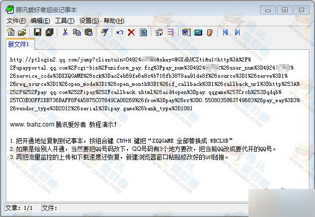 4、点击步骤2的开通按钮(我们限制了流量,所以不会立即打开网页),然后我们复制网页链接粘贴到记事本,按组合键 Ctrl+H 键把“XXQGAME 替换成 WBCLUB”(如果是给别人开通,当然要把QQ号码改下,QQ号码有3个地方要改)。