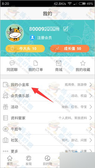 1、打开并登录途牛旅游,点击“我的小金库 - 我的资产”。如下图: