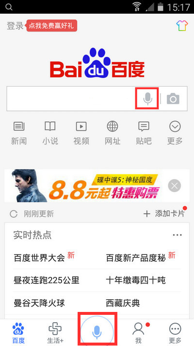 方法二:在手机百度中,点击下面的大话筒按钮,语音输入 “你好,度秘”,就能与度秘相会;