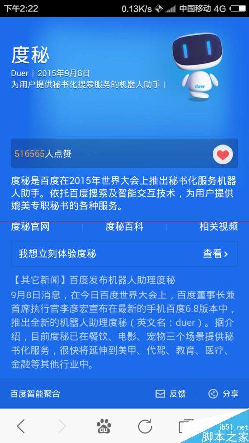 1、大家这里首先看下度秘的介绍,对度秘进行下大体的了解。
