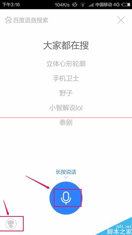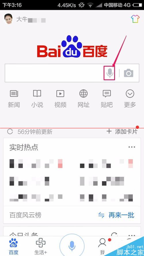3、打开手机百度以后,我们点击这里的语音搜索按钮。
