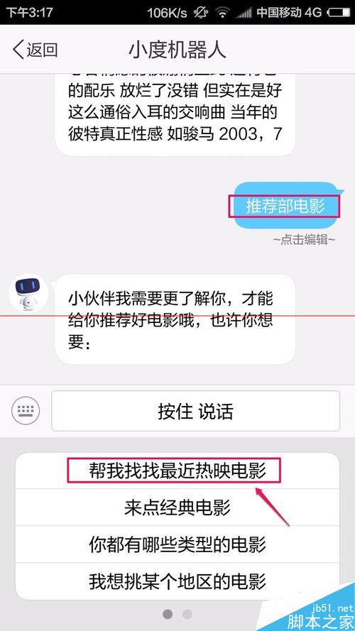 6、比如这里我们可以说想要搜索的内容,然后自动出现选择界面,选择即可。